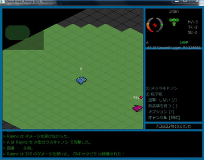 ちなみに下画像は敵Petrachが自分の攻撃で自滅するところ、両足と胴全部持ってかれてますよミサイル誘爆でないのに…範囲攻撃は距離を開けないとね